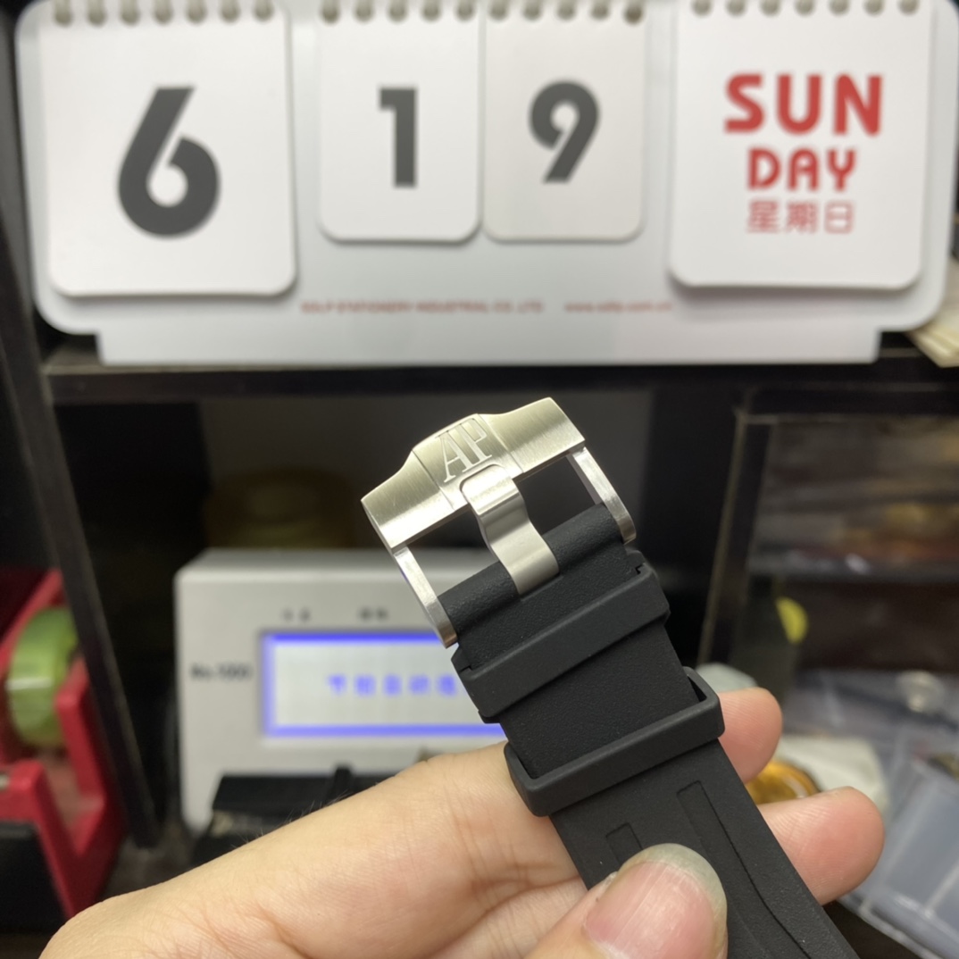 ·Dial Material: Black dial with "Méga Tapisserie" oversized grid decoration, featuring black sub-dials, rose gold luminescent applied hour markers, and Royal Oak hands. Black inner bezel with "Méga Tapisserie" oversized grid decoration.