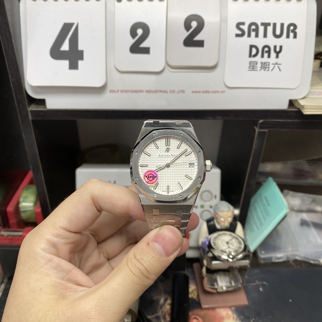 ·Dial Material: Grande Tapisserie Pattern with White Gold Luminescent Hour Markers and Royal Oak Hands