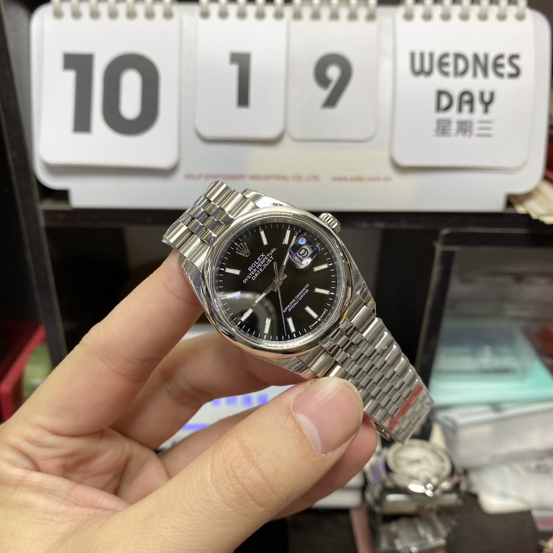 Rolex Datejust Series m126200-0003, Black Dial with Fluted Bezel and Five-link Bracelet, 36mm Size.