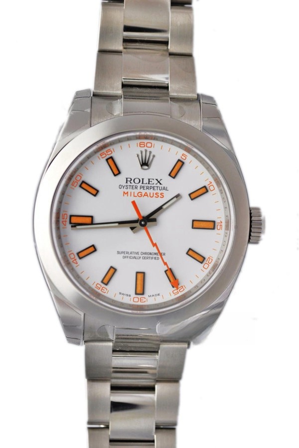 Rolex Milgauss Series 116400-72400, Lightning Bolt Hand white Dial, 40mm Size.