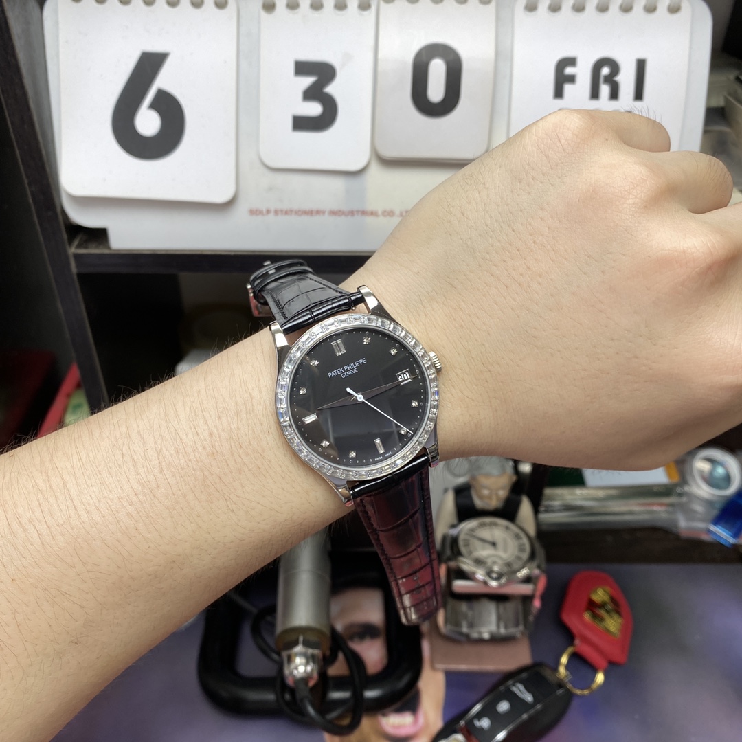 Patek Philippe Classical Watch Series 5298P-012, Black Dial and Square Diamond Bezel Italian Calfskin Leather Strap, 38mm Size.Basic Information: