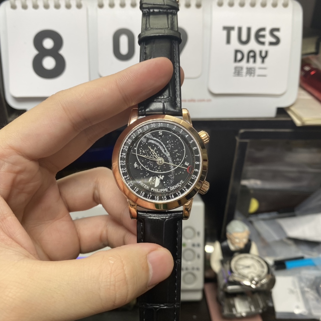 • Patek Philippe Complicated Chronograph Series 5396G-011, Black Dial, 44mm size.