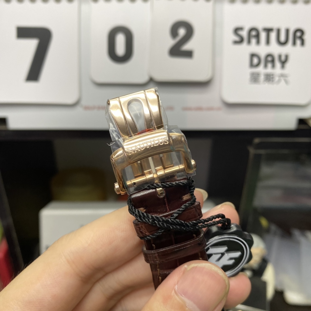 Patek Philippe Nautilusv series 5712GR-001, Coffee Dial Rose Gold Case Brown Leather Strap, 40mm size.