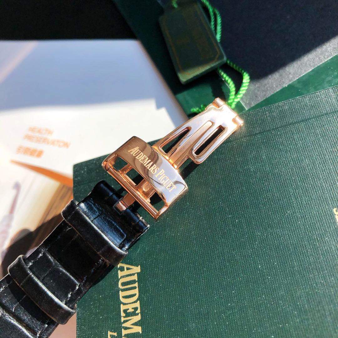 ·Dial Material: "Night Blue, Cloud 50" dial with "Grande Tapisserie" large grid pattern, rose gold luminescent applied hour markers, and Royal Oak hands